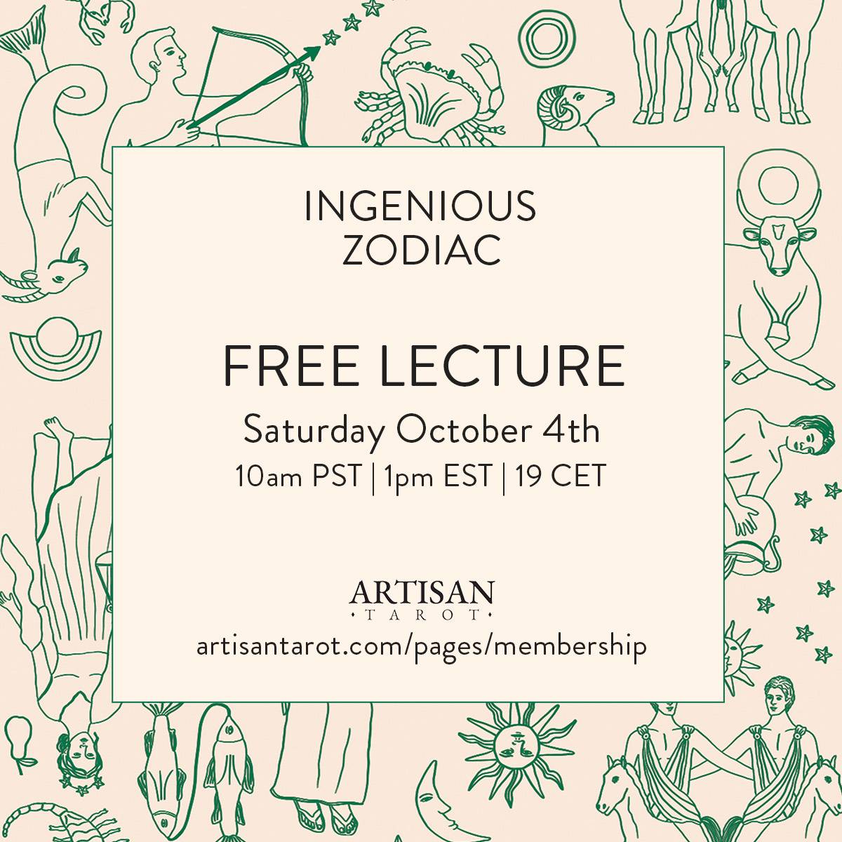The lecture is free to watch live, and a replay will be available for those who are members of Artisan Tarot (if you want to give that a try, the first 30 days are free).